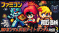 カートリッジのみの場合でも50,000円以上の高値が付くことが多く、状態の良い完品であれば、10万円を超える価格で取引されることも珍しくありません。これほど高額になる理由は、ファミコン後期の作品なので出荷本数が少なく現在ではレアゲームになっていることにあります。