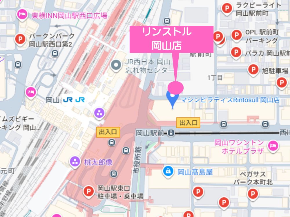 JR岡山駅東口から Rintosull 岡山店へのアクセス経路